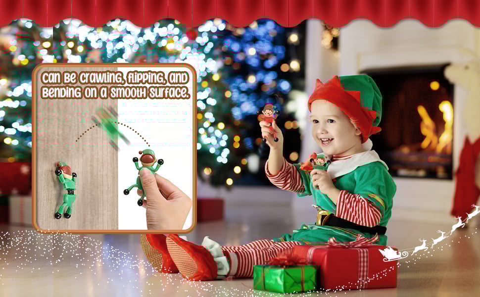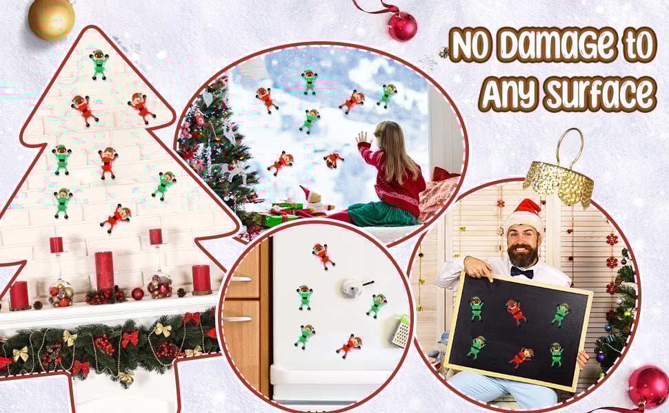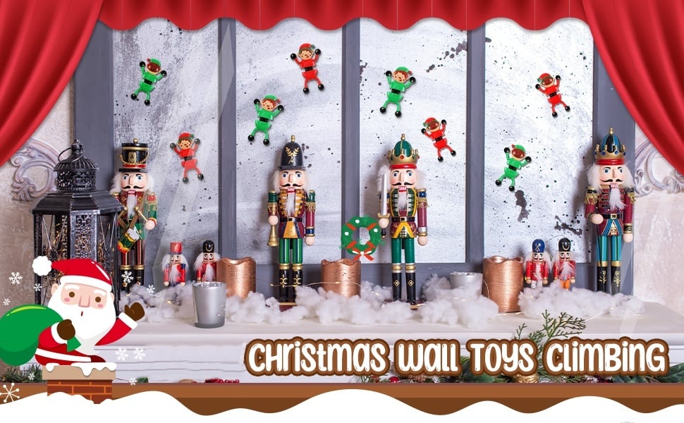 🎄Climbing Christmas Elf: Made of plastic and tpr material, the wall-climbing sticky toy is safe and has a sturdy construction that will hardly break or fade; it will roll down the wall like a climber climbing down a mountain, and after a while, it will slowly roll to the ground and bring you a lot of fun.