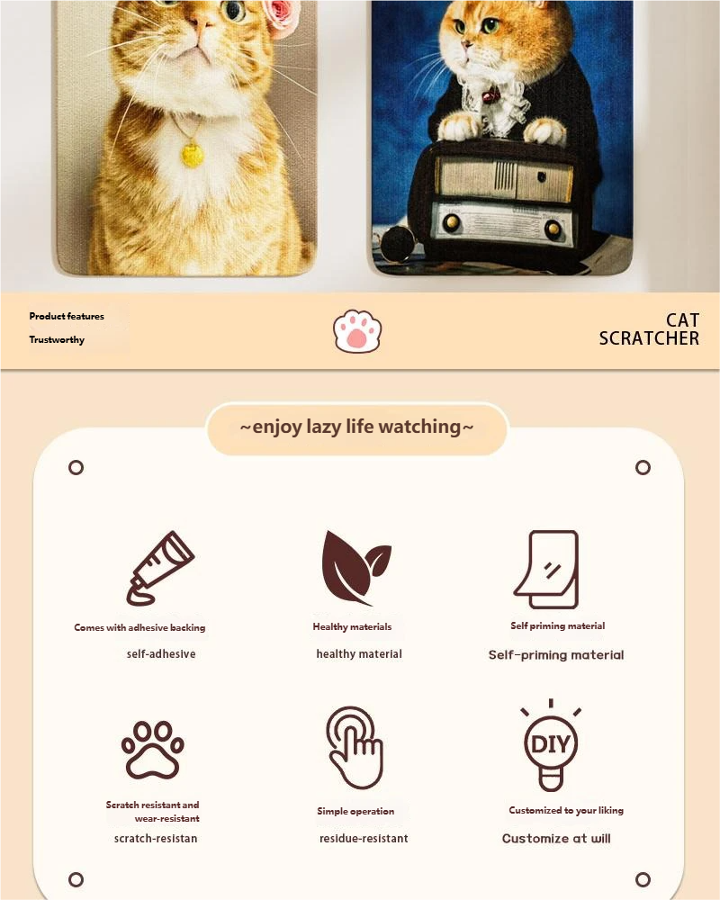 Customized cat climbing stickers, cat wall climbing stickers, freely cut, wear-resistant, scratch-resistant, cat-teasing tool, printed cat board wall stickers.