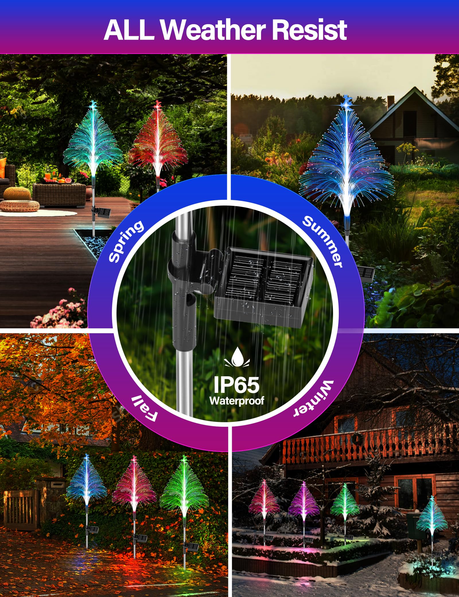 【IP65 Waterproof Solar Xmas Tree】: The solar stake lights with IP65 waterproof design, no worries about rain, snow, frost, or sleet. These garden solar lights are the perfect outdoor decorations for garden, yard, patio, backyard, and pathway. Ideal for Christmas, party, holiday, birthday, wedding and other occasions!