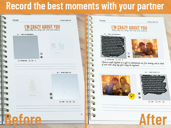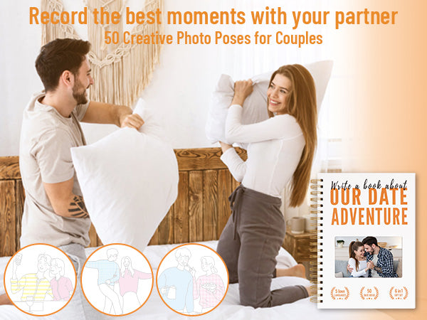 5 UNIQUE DESIGNS AHEAD OF OTHERS: Customizable photo cover. Unlock 50 fun couple photo poses. Metal ring loose-leaf binding with plenty of photo inserts. Crafted with premium 300g paper to preserve memories for decades.